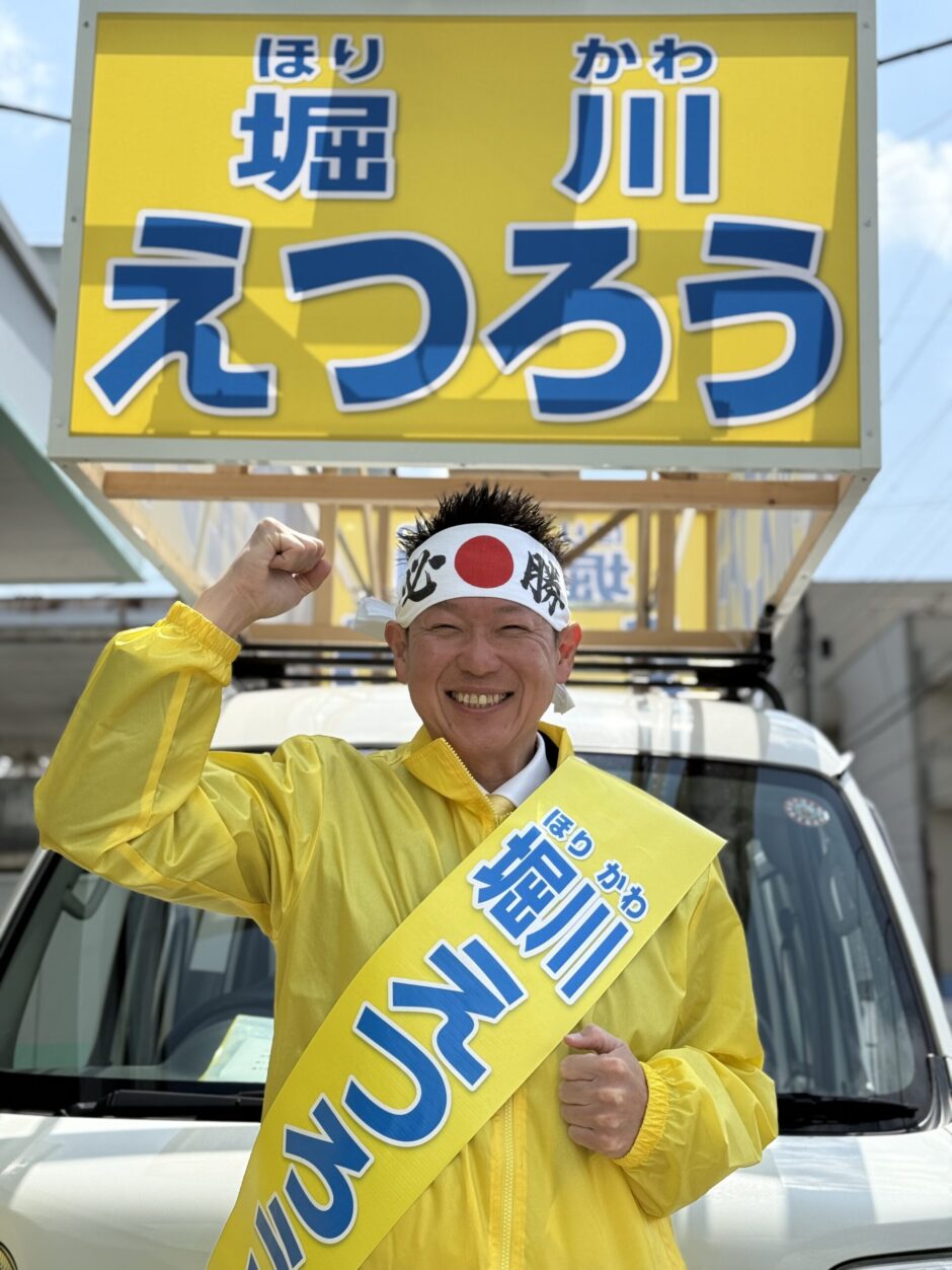 皆様から頂きましたご意見を市政へ届けさせて頂くためにも、皆様の大切な一票を、私「堀川えつろう」に託していただきたくお願いでございます。